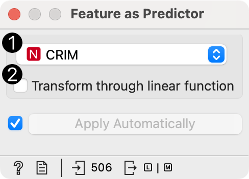 Enable transformation. When transformation is applied, the model constructed by the widget is equivalent to a logistic or linear regression model.